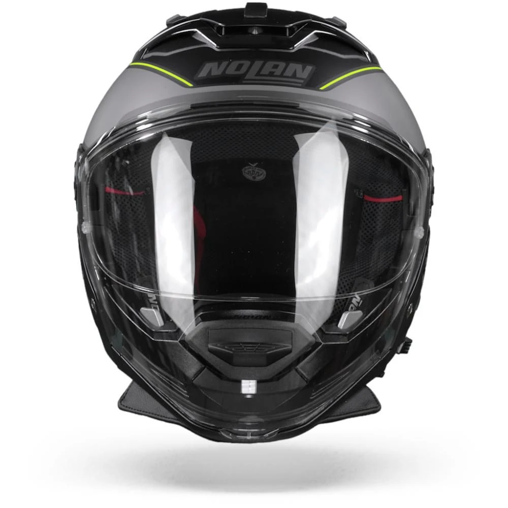 De N70-2 GT is een compacte en flexibele helm met een schaal gemaakt van polycarbonaat materialen die wordt geleverd in twee verschillende maten. De exclusieve “AirBooster Technology” garandeert een optimale ventilatie door daar waar nodig verse lucht te verspreiden, die in combinatie met een vizier luchtinlaat, achterste afzuigers en binnenste schaal comfortbekleding, zorgt voor high-end klimaatcomfort. De nekrol is afneembaar en komt met een exclusief verstelsysteem dat, samen met het gepatenteerde Microlock2 dubbelhendel retentiesysteem, tegelijkertijd comfort en veiligheid biedt. De N70-2 GT is ook ingesteld voor Emergency Stop Signal (ESS) en N-Com communicatiesysteem.